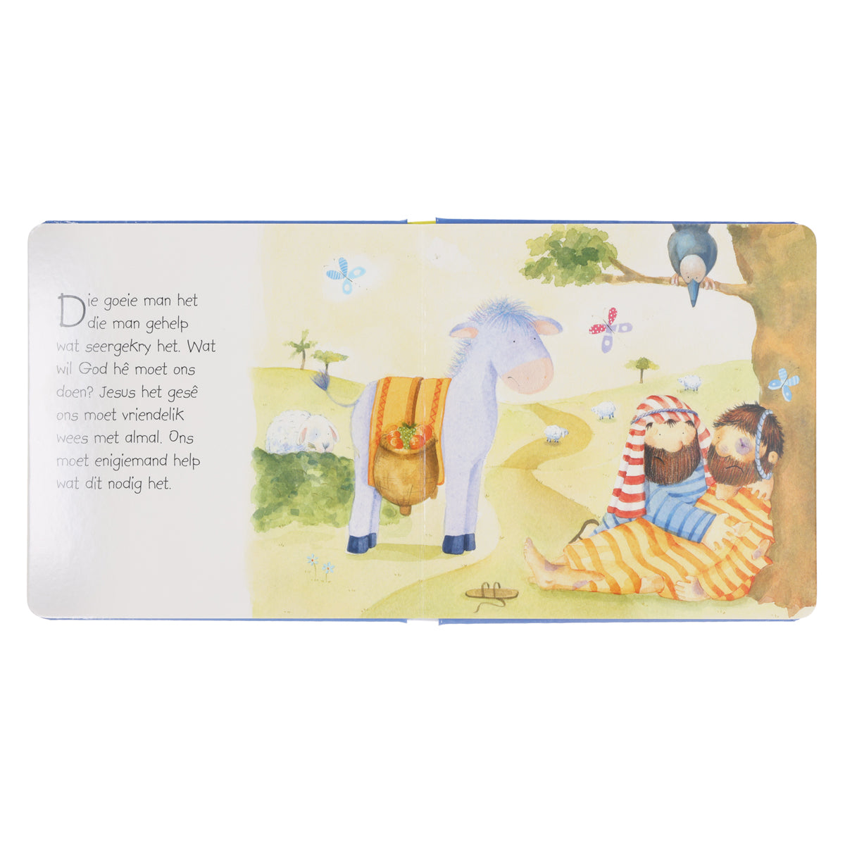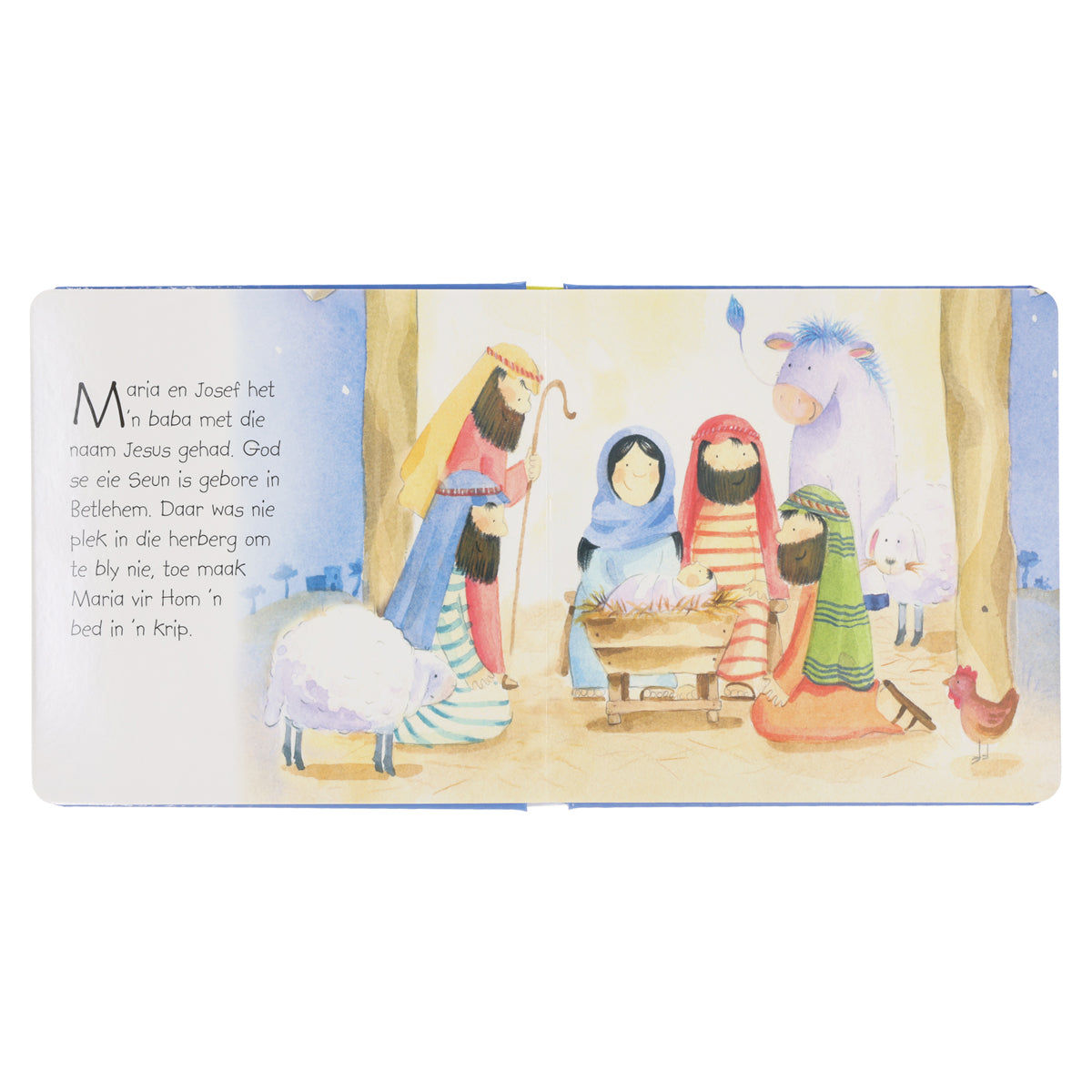 Eerste Bybel vir kleingoed bevat van die bekendste Bybelverhale, pragtig geillustreer, wat God bladsy vir bladsy aan kleingoed bekend sal stel. Dit sal kleingoed help om die eerste treë in hul geloof te neem en om die God te leer ken wat hulle liefhet! Kleingoed sal dit geniet om na die mense en diere in die kleurvolle kunswerk op elke bladsy te kyk, wat dit die perfekte keuse maak as jou baba se eerste Bybel!