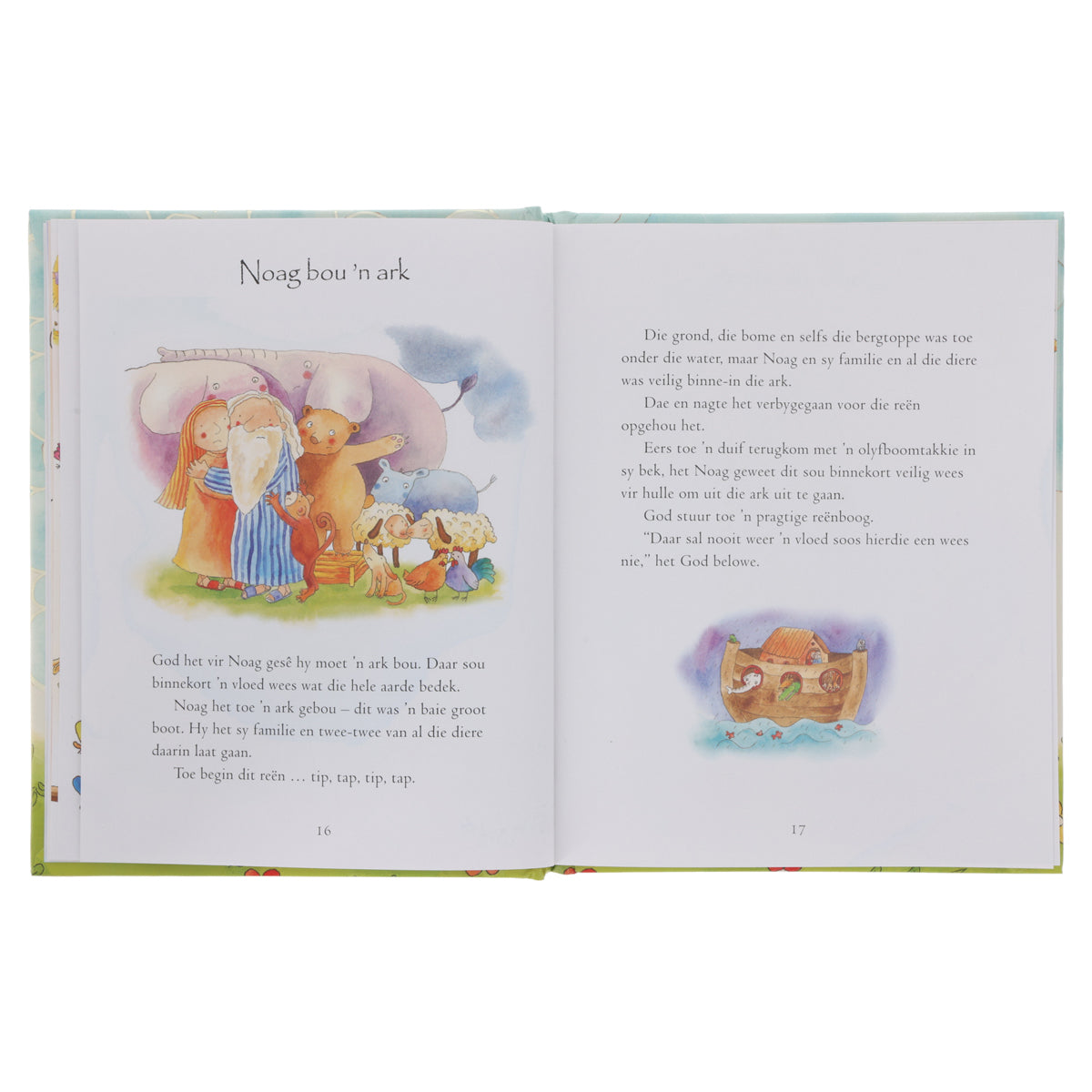 My eie doop-Bybeltjie is ’n pragtige volkleur-boekie met 60 klassieke Bybelstories uit die Ou en Nuwe Testament, asook gebede. Plek vir ’n familiestamboom en besonderhede oor mylpale wat ’n kleinding in die eerste lewensjaar bereik, maak dit ’n ekstra spesiale geskenk.