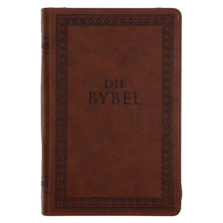 NLV Taan Bruin Kunsleer Standaard Bybel met Ritssluiter en Duimgrepe