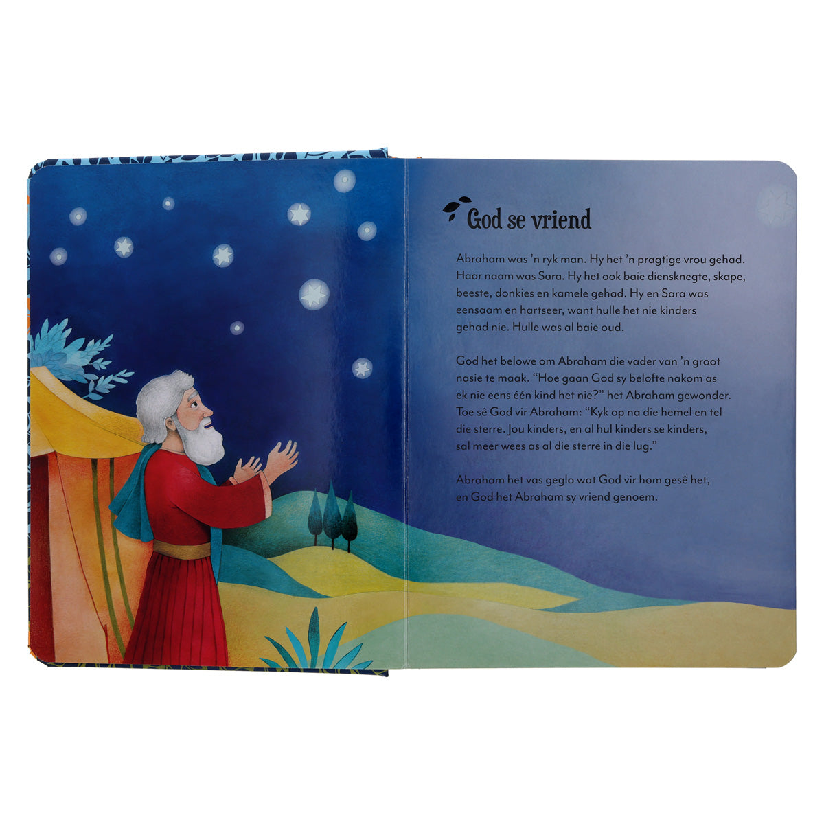 Elke verhaal word afgesluit met ʼn toepassing om dit relevant te maak op die kind se lewe. Hierdie verhale sal kinders aanmoedig om hulle eerste geloofstreë te neem. Dit sal hulle help verstaan dat Jesus ons Here en Verlosser is en dat ons nou en vir altyd saam met Hom kan woon!