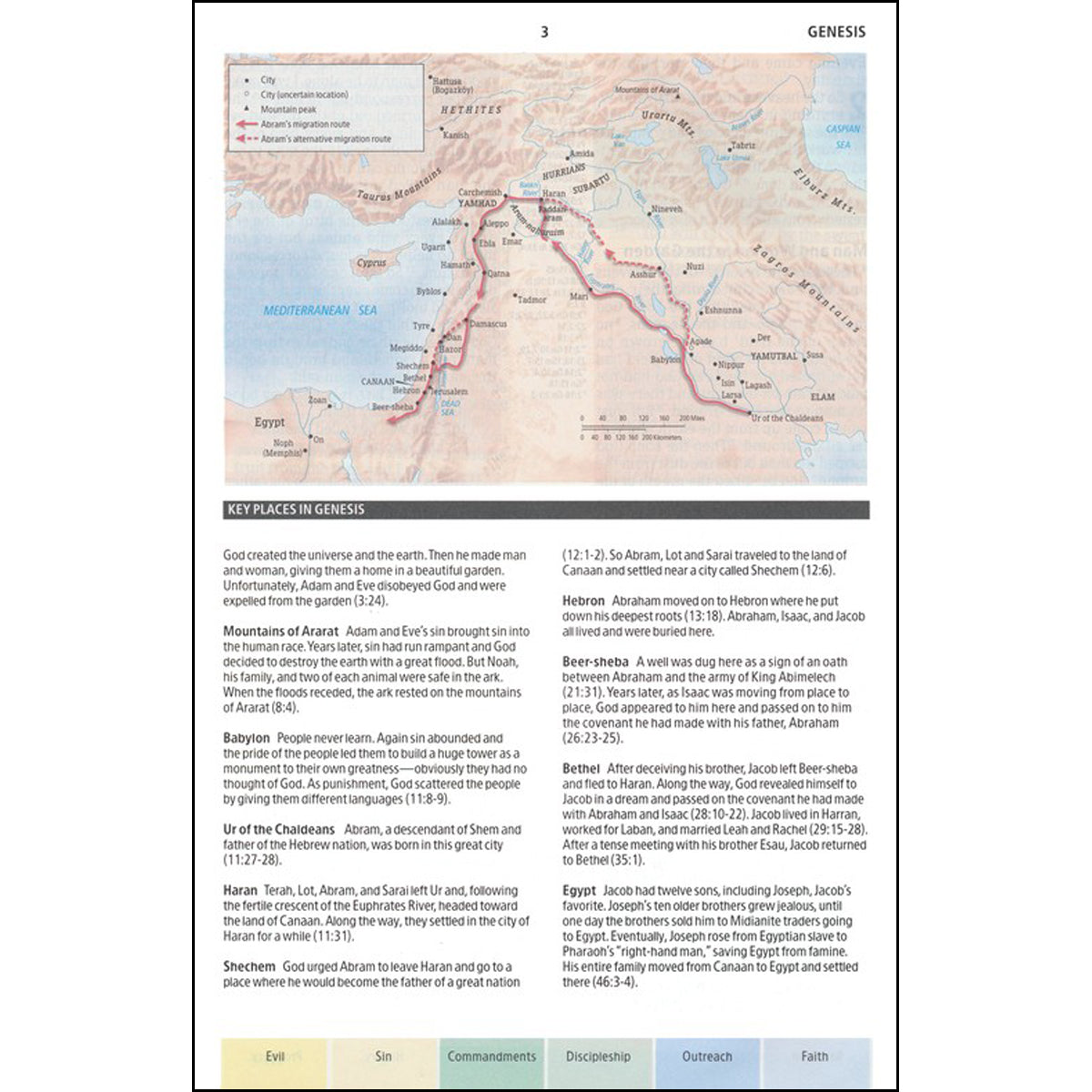 The CSB Rainbow Study Bible features a unique color-coding system that allows readers to quickly and easily identify twelve major themes of Scripture throughout the biblical text: salvation, God, family, love, history, prophecy, evil, sin, commandments, discipleship, outreach, and faith. The Bible study system also underlines all words directly spoken by God the Father, Jesus, and the Holy Spirit. With more than three million Bibles sold, the Rainbow Study Bible is the best-selling fully color-coded study Bible.