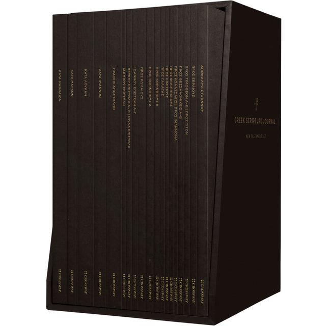 The ESV Greek Scripture Journal New Testament Set is a 19-volume set featuring thin, portable notebooks each containing one or more books of the New Testament and is great for college or seminary students learning Greek, pastors preparing for sermons, or anyone interested in taking notes alongside passages in the original Greek.