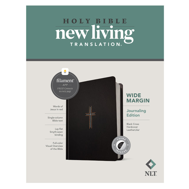 The NLT Wide Margin Bible, Filament-Enabled Edition is the only complete text Bible designed for journaling that has access to the Filament Bible app, which features thousands of study notes, devotionals, videos, reading plans, and more!