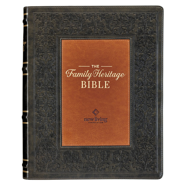 NLT Dark Olive And Brown Faux Leather Flexcover The Family Heritage Bible is backordered and will ship as soon as it is back in stock.