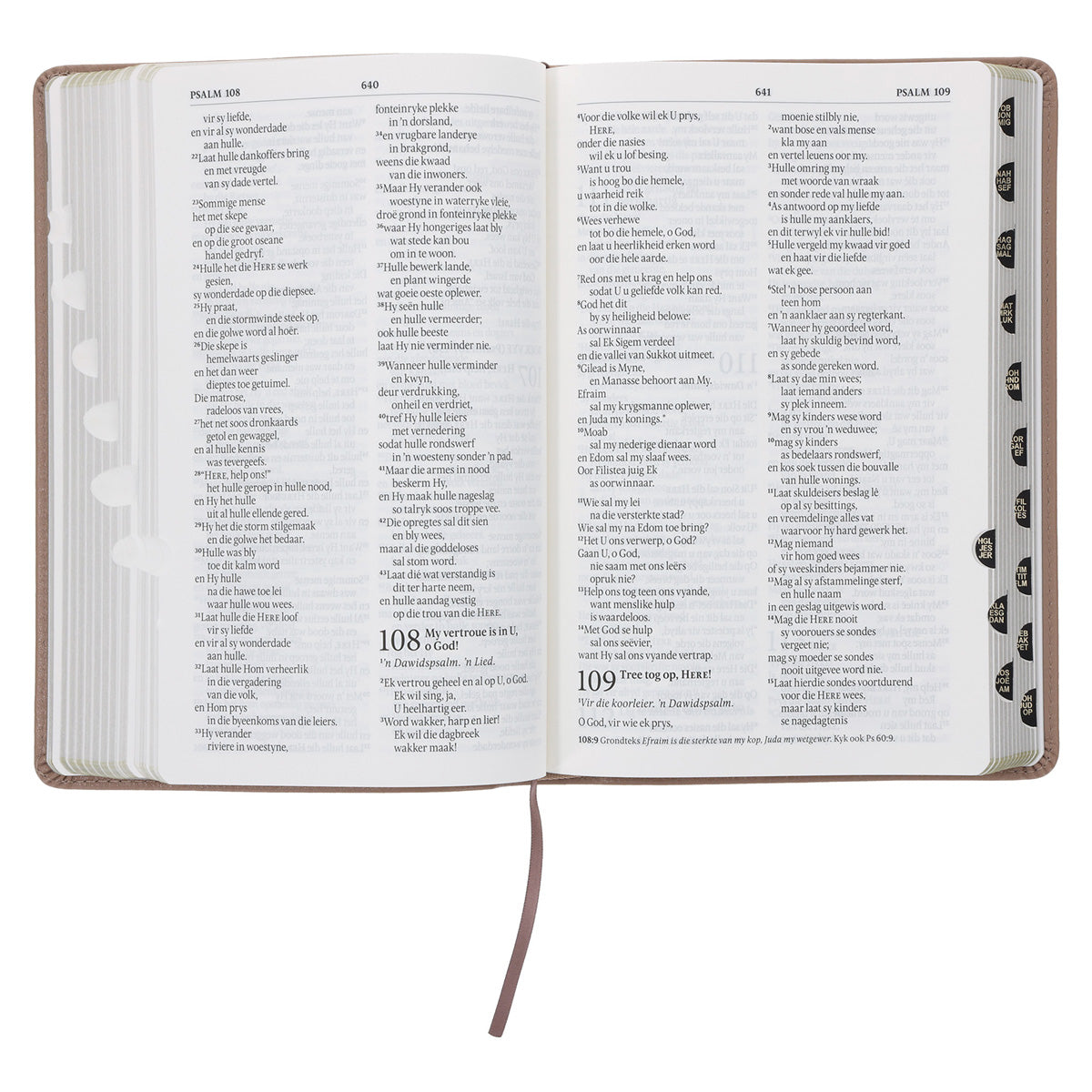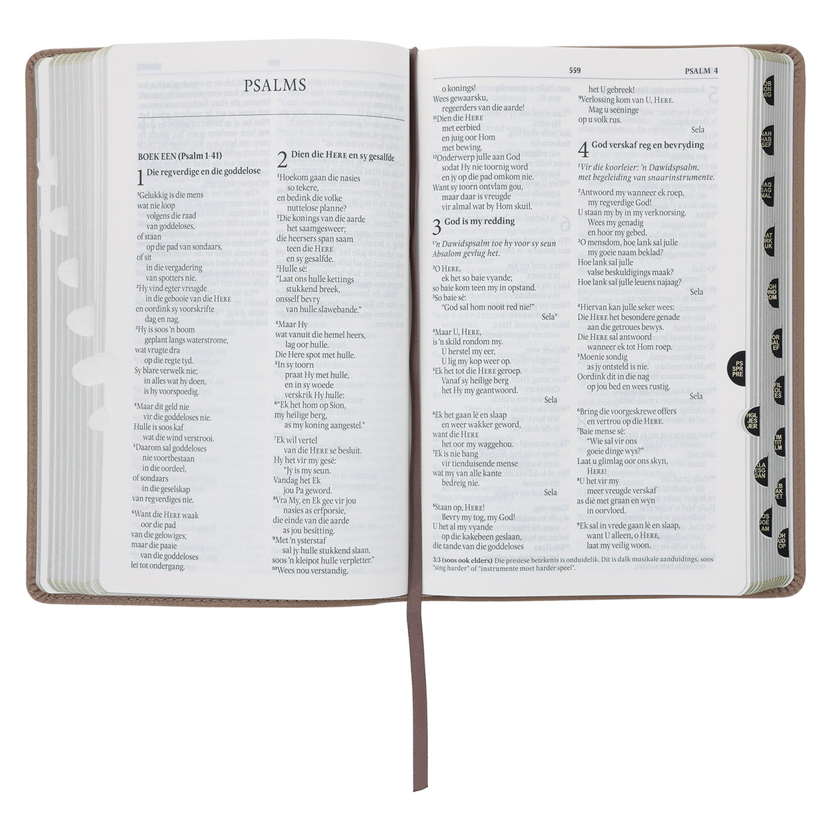 ’n Pragtige nuwe uitgawe van die gewilde NLV-vertaling met 'n omslag van egte leer.