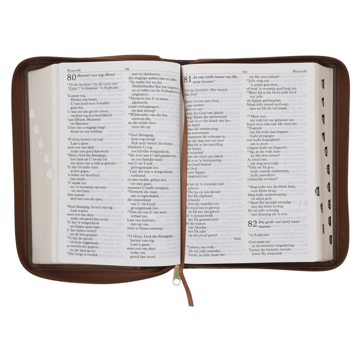 NLV Tweekleur Bruin Kunsleer Bybel Grootdruk Met Ritssluiter & Duimgrepe