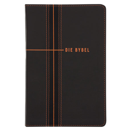 NLV Donkerbruin en Oranje Kunsleer Standaard Bybel Met Duimgrepe