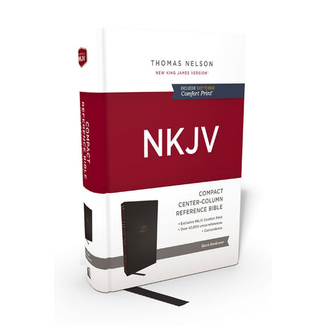 NKJV Compact Center-Column Reference Bible Black Comfort Print (Hardcover)