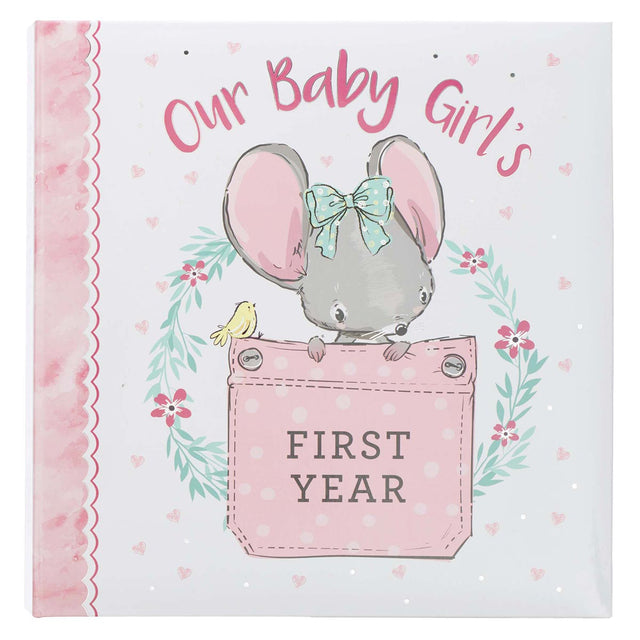 Our Baby Girl’s First Year Memory Book captures the precious memories of baby’s first year. It offers space to record memorable moments and milestones like her first steps and her first tooth, scrapbooking pages for photographs, and a special keepsake pocket for baby’s hospital bracelet or a lock of hair from her first haircut.