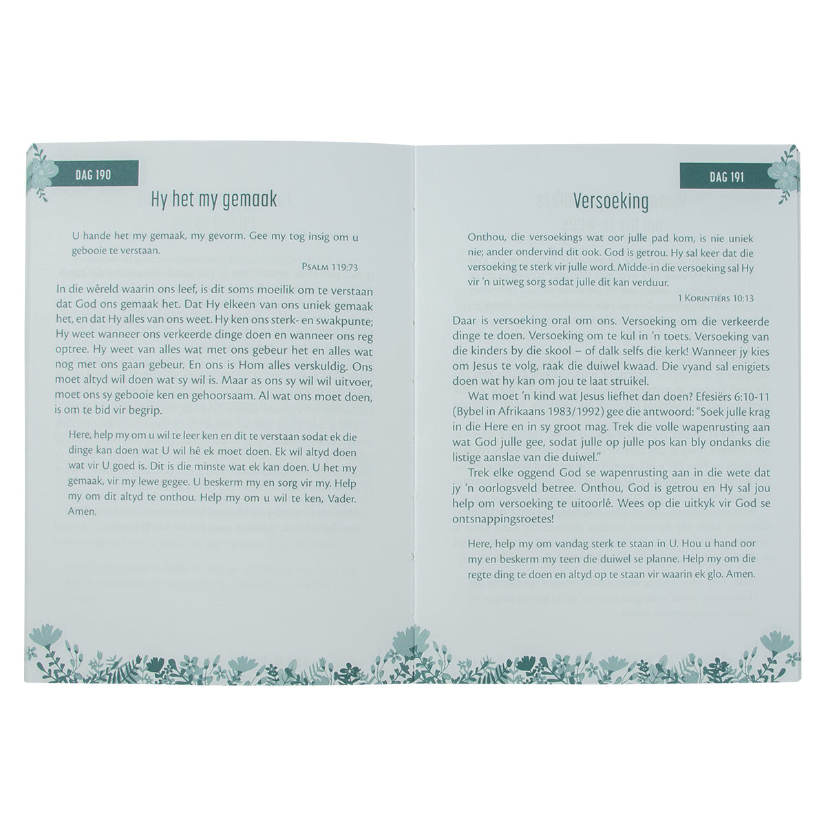 Dit is soms moeilik om God se wil te ken. Daaglikse wysheid vir dogters is dus ideaal vir dogters van 8 tot 12 om God se teenwoordigheid, leiding en liefde in hulle elkedagse lewe te ervaar. Die 365 dagstukke sal hulle help om nader aan hul Skepper te leef en in sy liefde te floreer. Saam met die Skrifgedeeltes en gebede sal hulle God leer ken en sy liefde, omgee en plan vir hulle beter verstaan. Dit is die ideale manier om dogters te leer hoe om elke dag ’n pad saam met God te stap.
