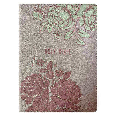 NLT Pink Peonies Genuine Leather Bible Large Print