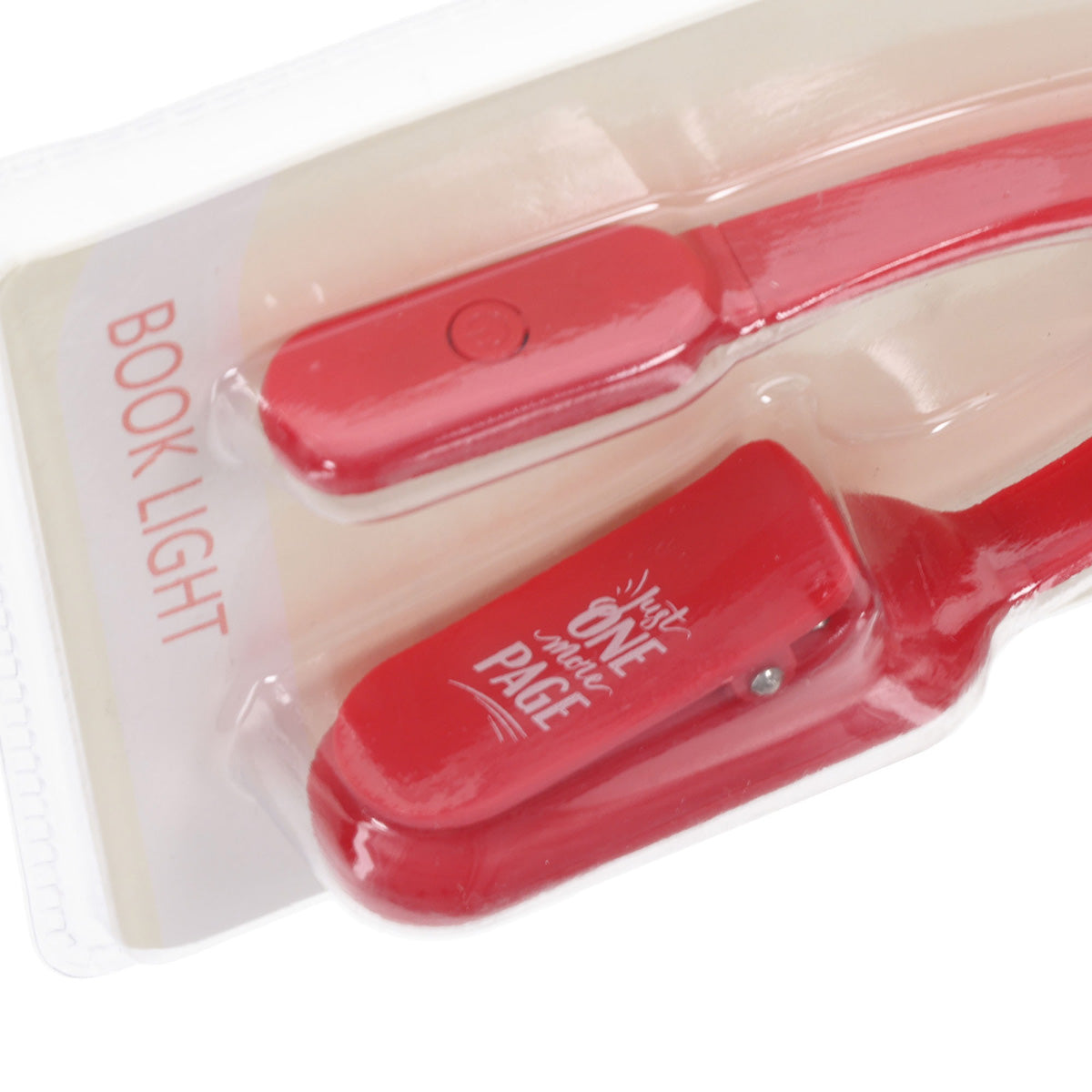 The Just One More Page Book Light's simple Red design is accented in white with a phrase used by many a book lover.
