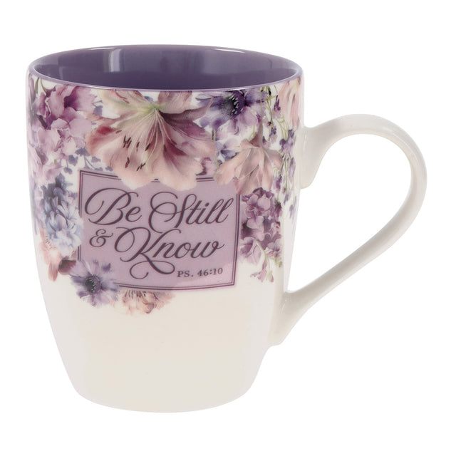 Start your day inspired with the Be Still and Know Ceramic Mug with Purple Interior. This mug features a beautiful design and an uplifting scripture to encourage your heart. Crafted from durable ceramic, it's perfect for coffee, tea, or quiet moments of reflection. A meaningful gift to uplift yourself or someone special.