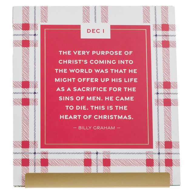 Count down to Christmas with our Christmas Plaid Advent Calendar Card Set with Stand. This charming set features 25 individual cards, each with a meaningful quote or scripture centered on the Christmas season. Designed to be displayed with the included metal stand, it’s easy to swap cards daily and enjoy the seasonal messages leading up to Christmas. The festive plaid design adds a cozy, joyful touch to your holiday décor, making it a perfect way to celebrate the season.