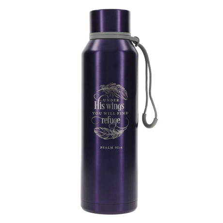 Under His Wings You Will Find Refuge Purple Stainless Steel Water Bottle