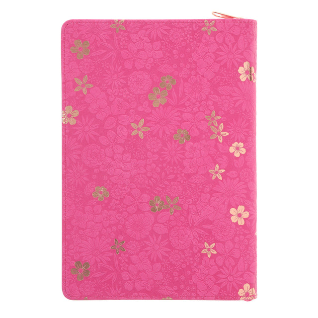 Set some time apart to journal your thoughts and prayers in this Be Still and Know That I Am God Floral Hot Pink Faux Leather Journal with Zipped Closure.