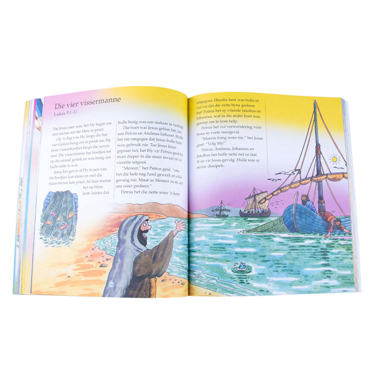 Die Bybelstorie-aktiwiteitsboek is die ideale manier om ’n liefde vir God se Woord by 5- tot 8-jariges te kweek. 52 bekende Bybelstories uit die Ou en Nuwe Testament, soos Noag se ark, Josef se spesiale kleed, Dawid en Goliat, en Jesus se geboorte, wonderwerke, dood en opstanding, word op ’n maklik verstaanbare manier oorvertel. Elke storie sluit af met twee aktiwiteite soos soek die verskille, soek die woorde, kleur in volgens nommers en voltooi die prentjie.