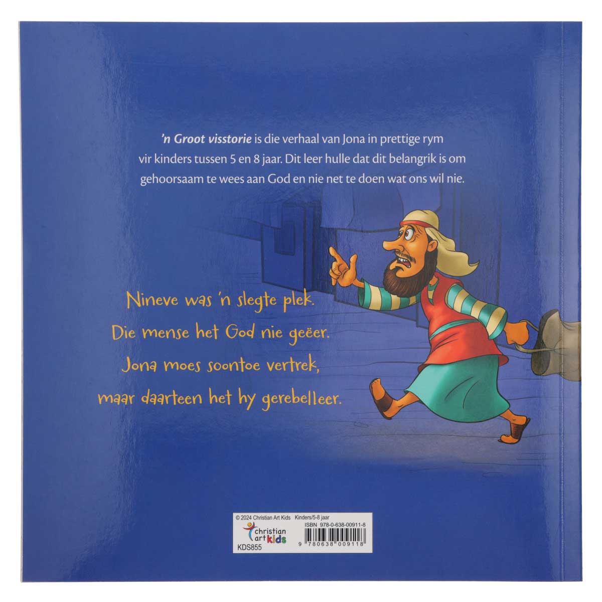 ’n Groot visstorie: Die Verhaal van Jona is die geliefde Bybelstorie van Jona in prettige rym vir kinders tussen 5 en 8 jaar. Dit leer hulle dat dit belangrik is om gehoorsaam te wees aan God en nie net te doen wat ons wil nie.