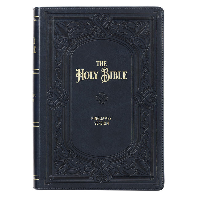 KJV Midnight Blue Antique Frame Faux Leather Full-Size Bible Giant Print Indexed