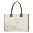The Be Strong and Courageous Cream Cotton Canvas Tote Bag is a beautiful blend of spiritual encouragement and elegant style. This tote is perfect for the Christian woman seeking a meaningful yet chic way to stay encouraged.