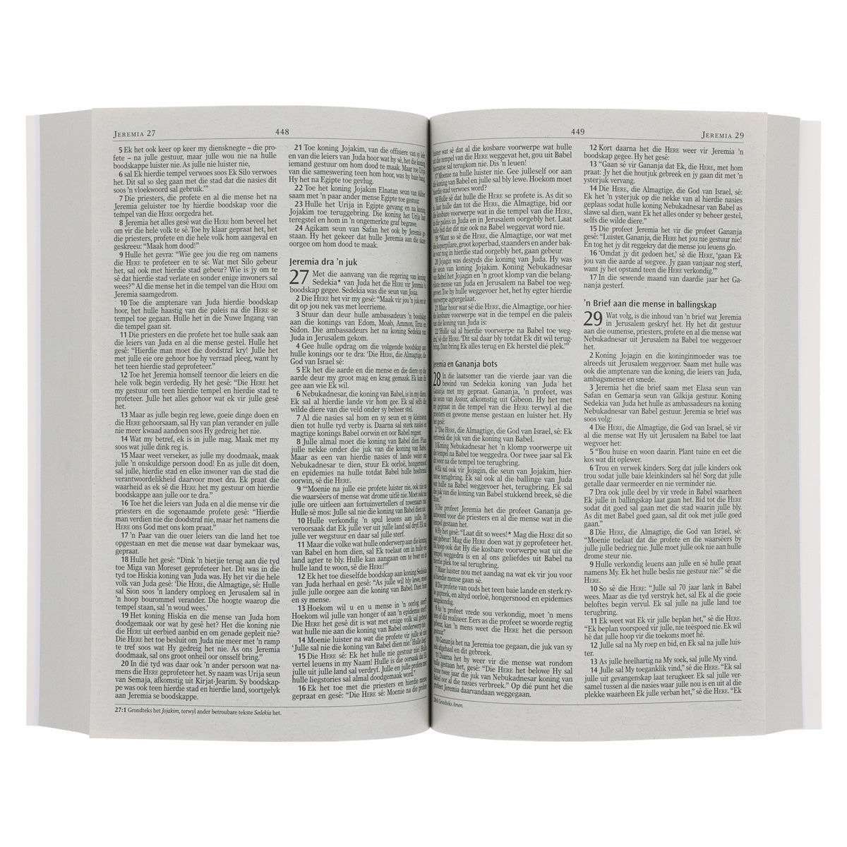 Die NLV Uitreikbybel is ideaal om uit te deel tydens uitreik-aksies en evangelisasie. Hierdie bekostigbare uitgawe met die volledige teks van die Nuwe Lewende Vertaling, wat ’n eietydse stem aan tydlose beloftes gee, sal ʼn waardevolle geskenk wees.
