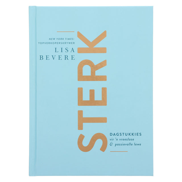 In Sterk: Dagstukkies vir 'n Vreeslose en Passievolle Lewe nooi Lisa Bevere jou uit om sterk te wees en nie daarvan weg te skram nie. Ongelukkig kan jy dit nie op jou eie vermag nie - nie eens deur harder te probeer of meer te doen nie. Jou krag lê in God opgesluit. Leer om jou verhouding met God te verdiep, Hom beter te leer ken en Hom onvoorwaardelik te volg. Aan die hand van 90 dagstukkies wat temas soos vernietigende verhoudings, vergifnis, oordeel, vrede, berou, rus, seerkry, woede ens. insluit en uit Skrifverwysings, 'n Bybelse lering, 'n gebed en 'n Ek is sterk-bevestiging bestaan, kan jy die sterk vrou word wat jy graag wil wees.