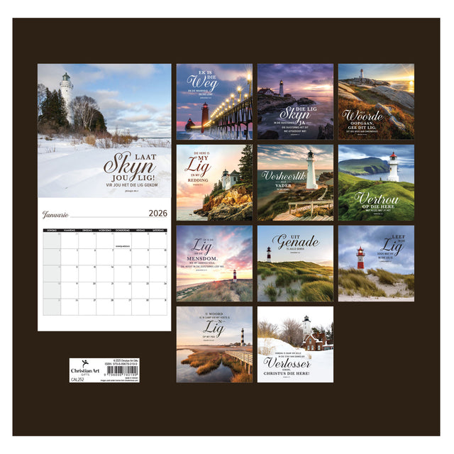 Brighten up someone's office or home and encourage their faith at the same time when you give them this 2026 Ek Is die Lig vir die Wêreld Wall Calendar as an end-of-year or New Year's gift.
