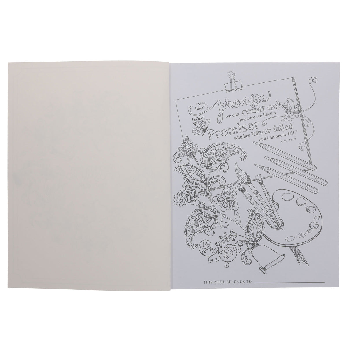 Unwind and take a therapeutic break after a long day by reflecting on Scripture and coloring your way to calmness and contentment with the Promises from God's Word in Color Coloring Book.