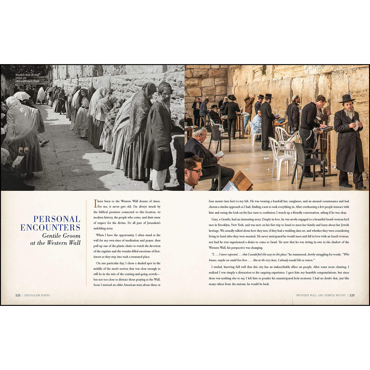 This stunning new photo-comparison book and follow-up to Israel Rising documents the long-awaited and ongoing restoration of a city “set in the center of the nations” (Ezekiel 5:5). From its famed walls and gates to the beloved Old City and the new city rising up around it, view some of the oldest photos of Jerusalem ever taken (starting in the 1840s) and see them re-created from the same perspective today―some for the first time ever.