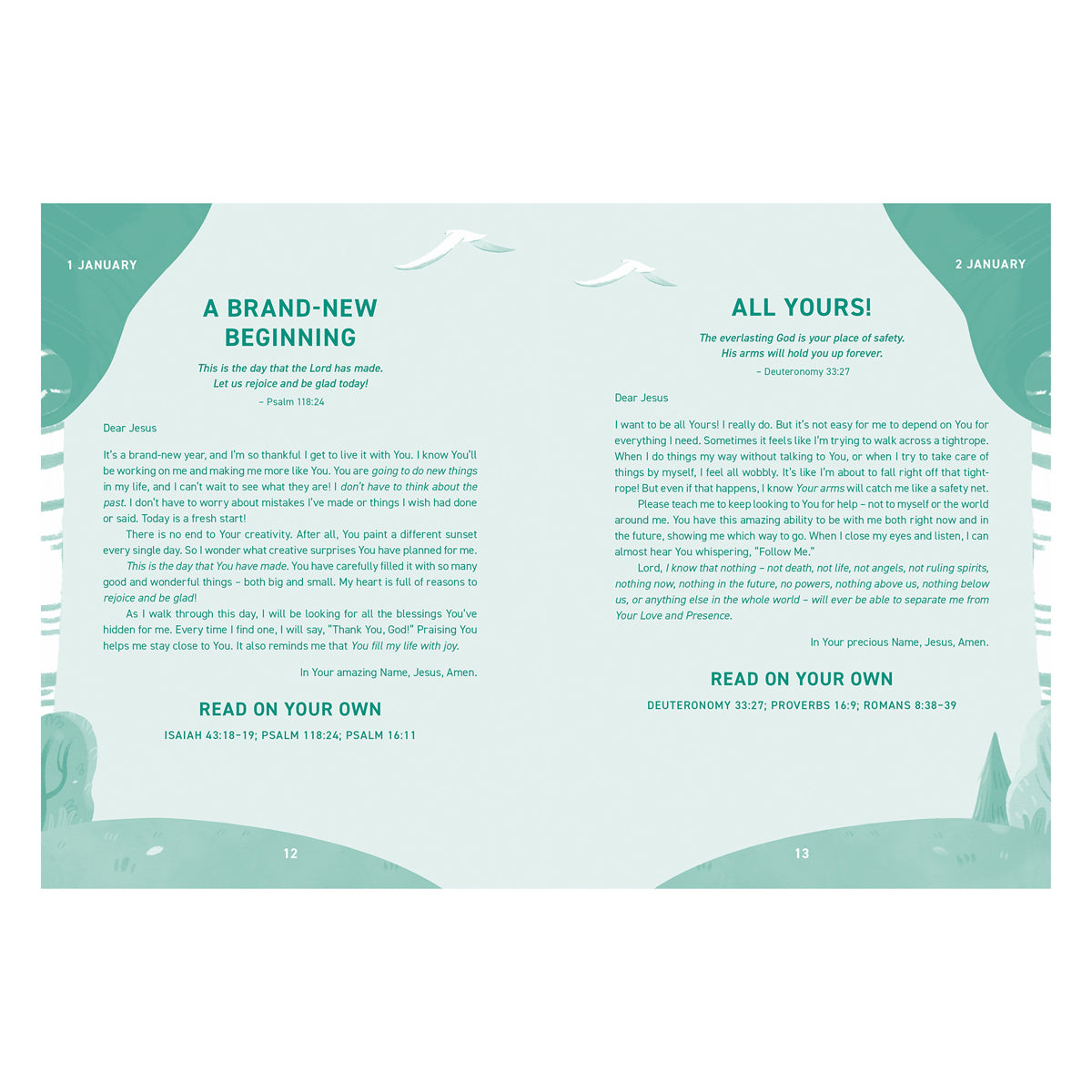 • Each day includes a verse, prayer and scripture references to get to know the Bible better