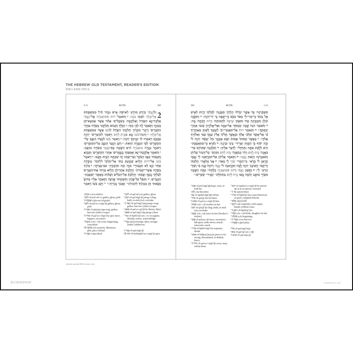 The Hebrew Old Testament, Reader’s Edition combines the text of the Westminster Leningrad Codex (WLC) with a running list of glosses of every word that occurs fewer than 75 times in the Hebrew Old Testament, for an easier reading experience in the original language.