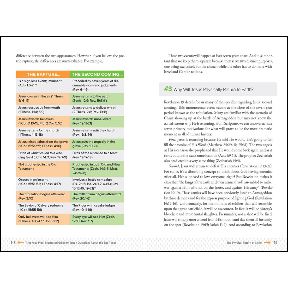 Packed with charts, timelines, and infographics, The Prophecy Pros’ Illustrated Guide to Tough Questions About the End Times delivers speculation-free, biblically sourced answers to your questions on one of the Bible’s most significant topics. You’ll learn about imminent events like the rapture, Jesus’ second coming, and life in heaven, while understanding exactly what Bible prophecy is, where it’s found in Scripture, and why Christians should study it.