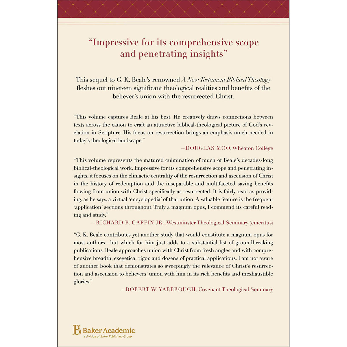 In Union with the Resurrected Christ: Eschatological New Creation And New Testament Biblical Theology follow-up to his monumental A New Testament Biblical Theology, G. K. Beale summarizes and expands on that work with an eye to fleshing out the theological implications of the resurrection and ascension. Beale explains that Christ's resurrection and ascension place him as the beginning of the eschatological fulfillment of the new creational kingdom. Specifically, Christ is the fulfillment of a cluster of nineteen Old Testament end-time expectations. These eschatological realities attributed to Christ are imprinted on believers through their dynamic union and identification with him. Through careful exegesis, Beale explores these facets and deliberately draws out important practical applications for everyday Christian living in the overlap of the old creation and the new.
